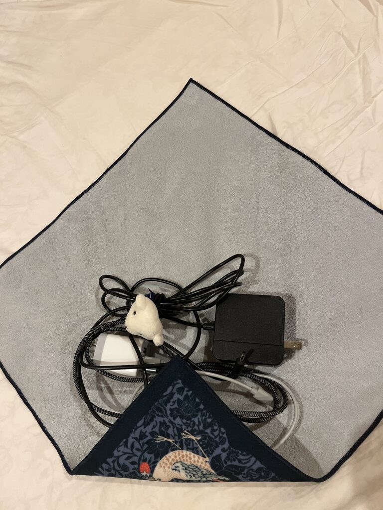 あとは出先で必要な時にごちゃつく充電ケーブルやアダプター類をまとめてくるんだり。