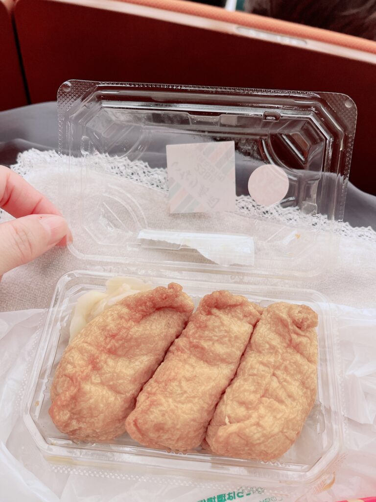 本当はしっかりしたお弁当を選びたかったのですが、緊張のあまりちゃんと食べられる気がせず残してしまうのも嫌だったのでほどよい量のお稲荷さんを見つけゲット🍴