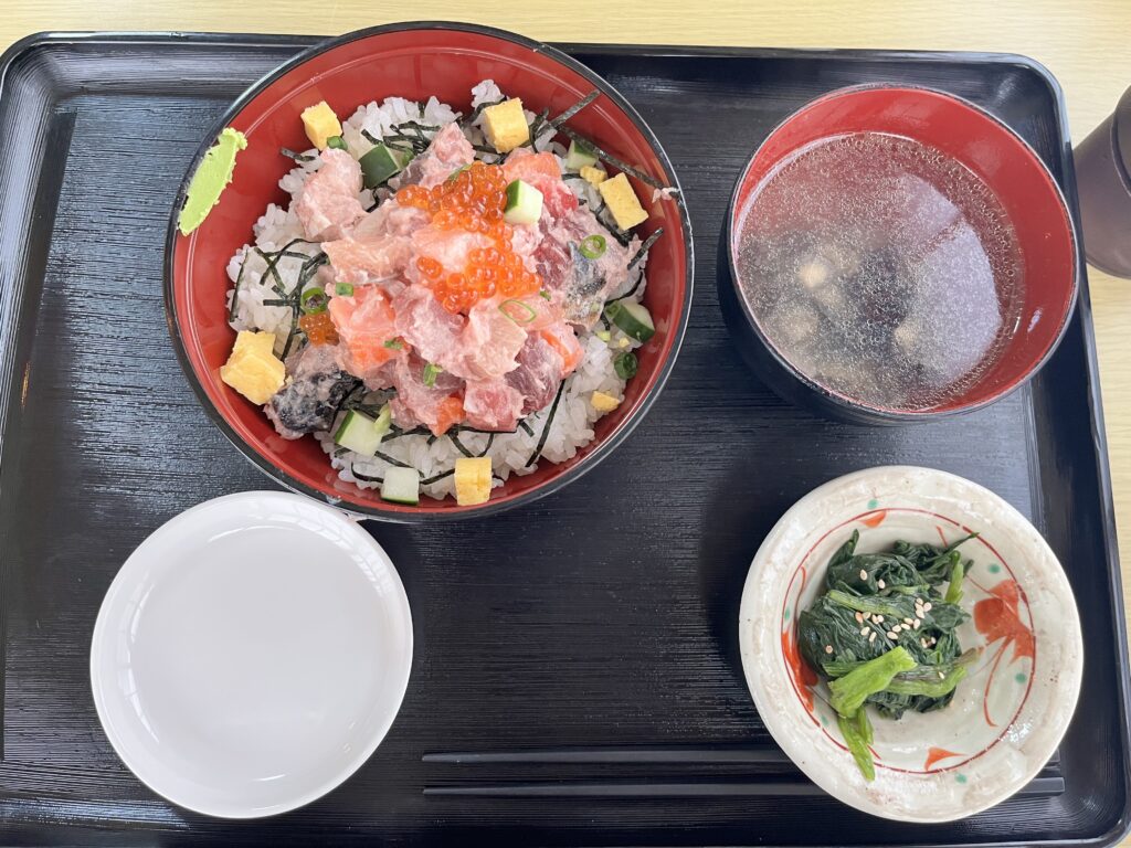 すでにほとんどのメニューが売り切れとなっており、残された2種類のメニューから『漁師の船上まかない丼』を注文しました。