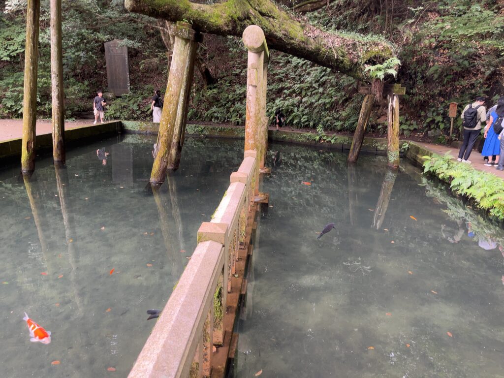大きな鯉がたくさん泳いでいましたが、この池は神職の方の禊の場なのだそう。