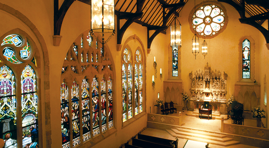 荘厳な礼拝堂に響き渡る神聖な音色が紅葉の美しさをさらにドラマチックに演出してくれます。